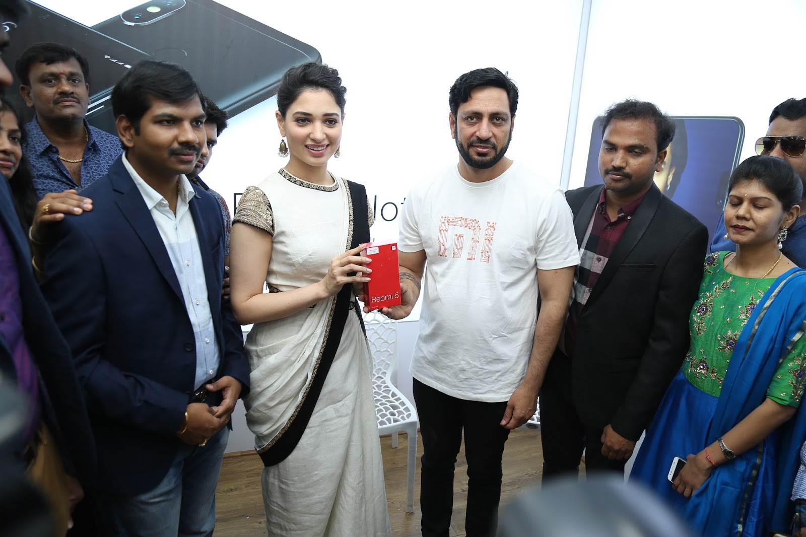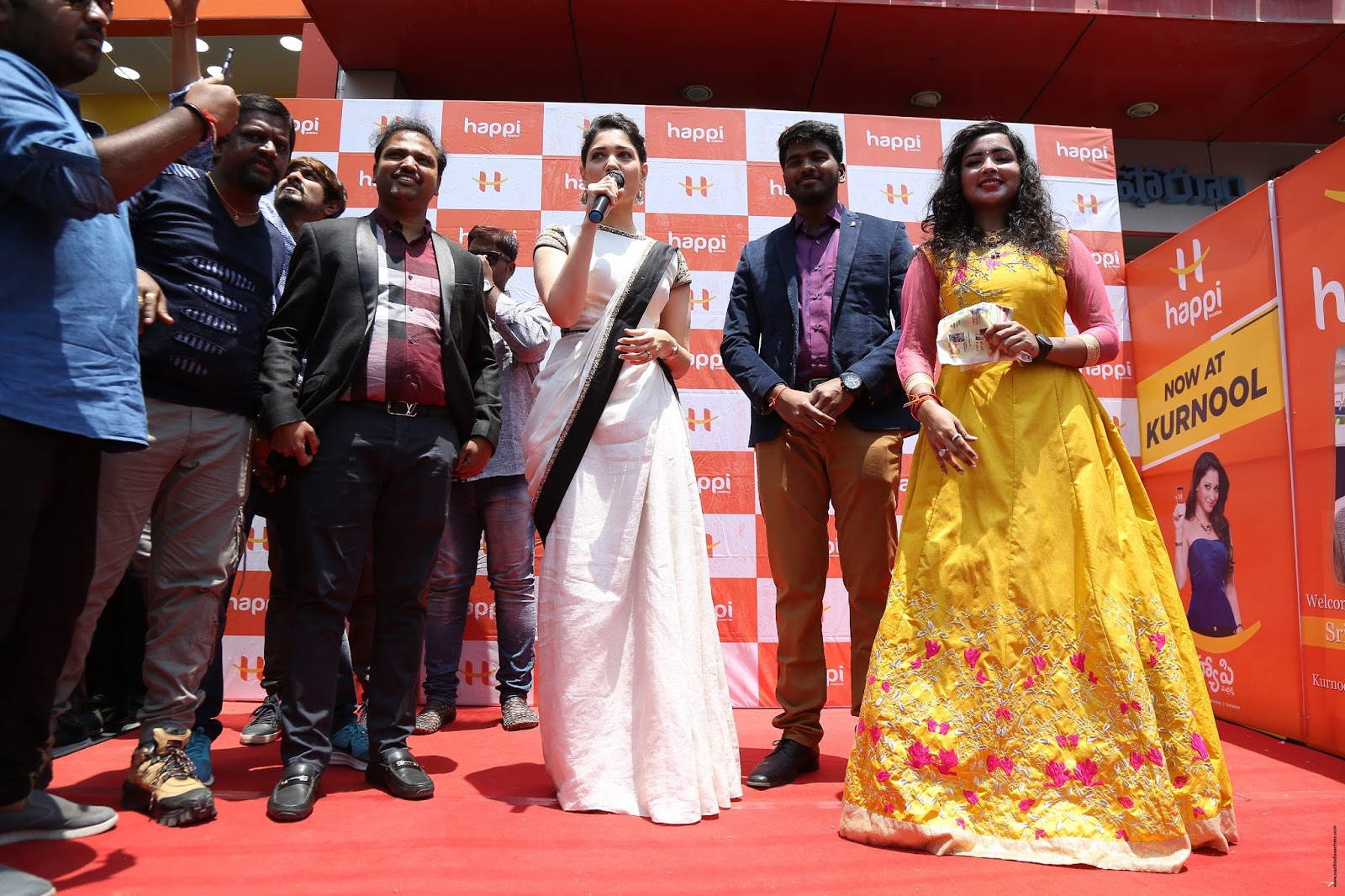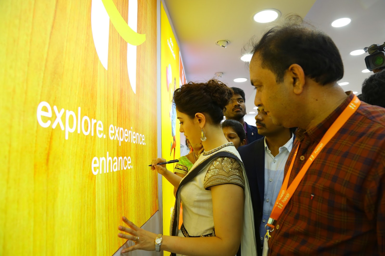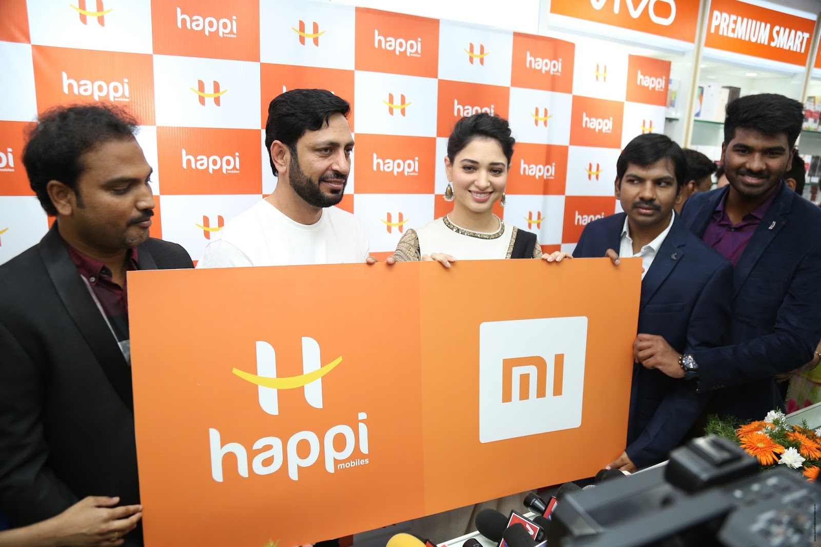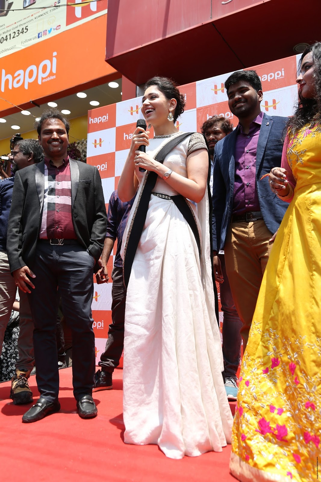 Tamannaah Bhatia launches Happi Mobiles store in Kurnool, Andhra Pradesh. For the event Tamannaah was seen in a Tarun Tahiliani white saree with black patch border, paired with a matching blouse.