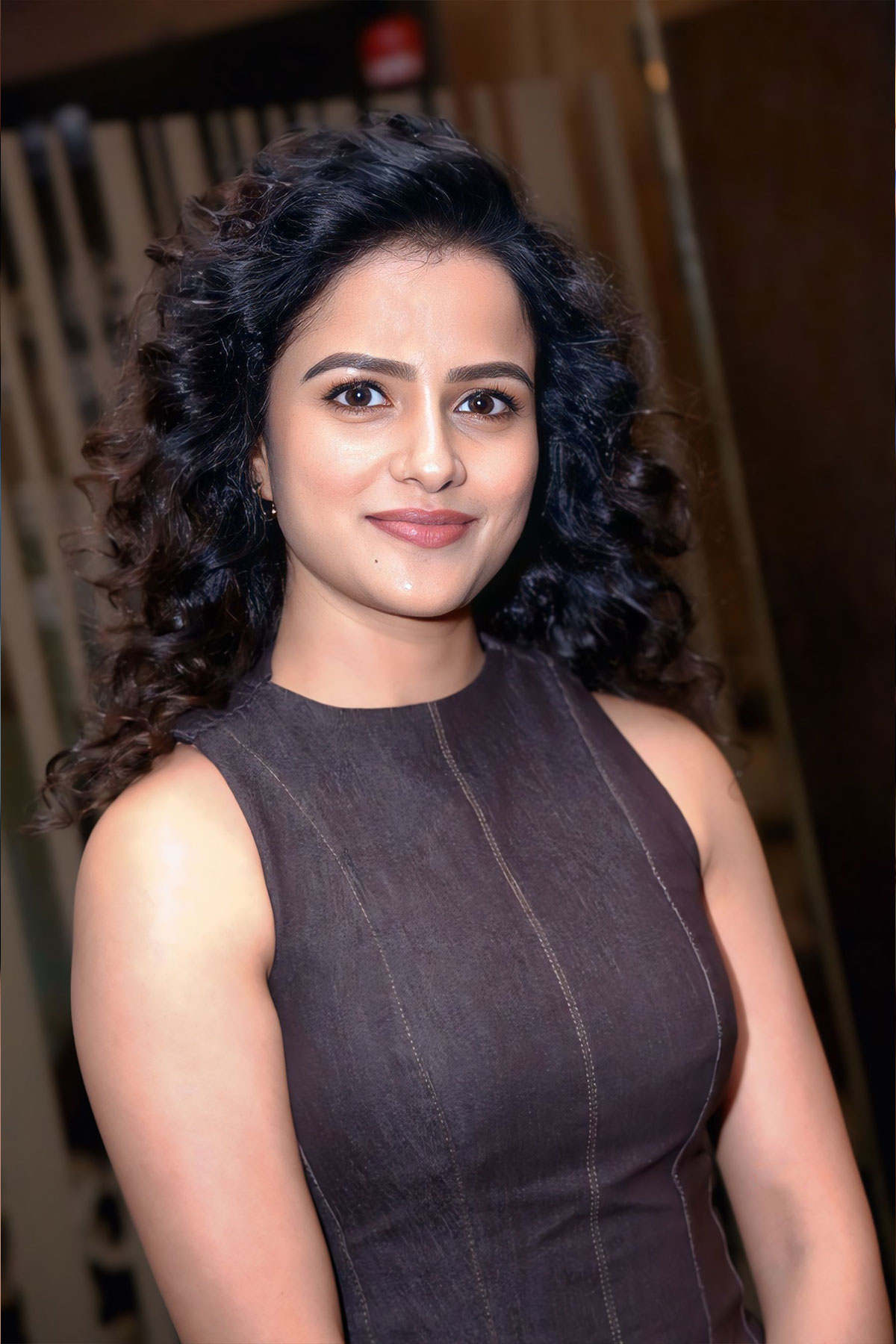 Vaishnavi Chaitanya embraced a modern, structured look at the Epic glimpse launch, wearing a dark wash denim dress with contrasting seams.