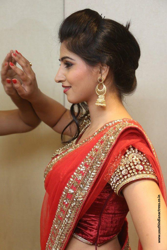 Varshini Sounderajan in red half saree stills. Telugu Actress Varshini Sounderajan hot stills in red half saree at Sasya Summer Wedding Line.