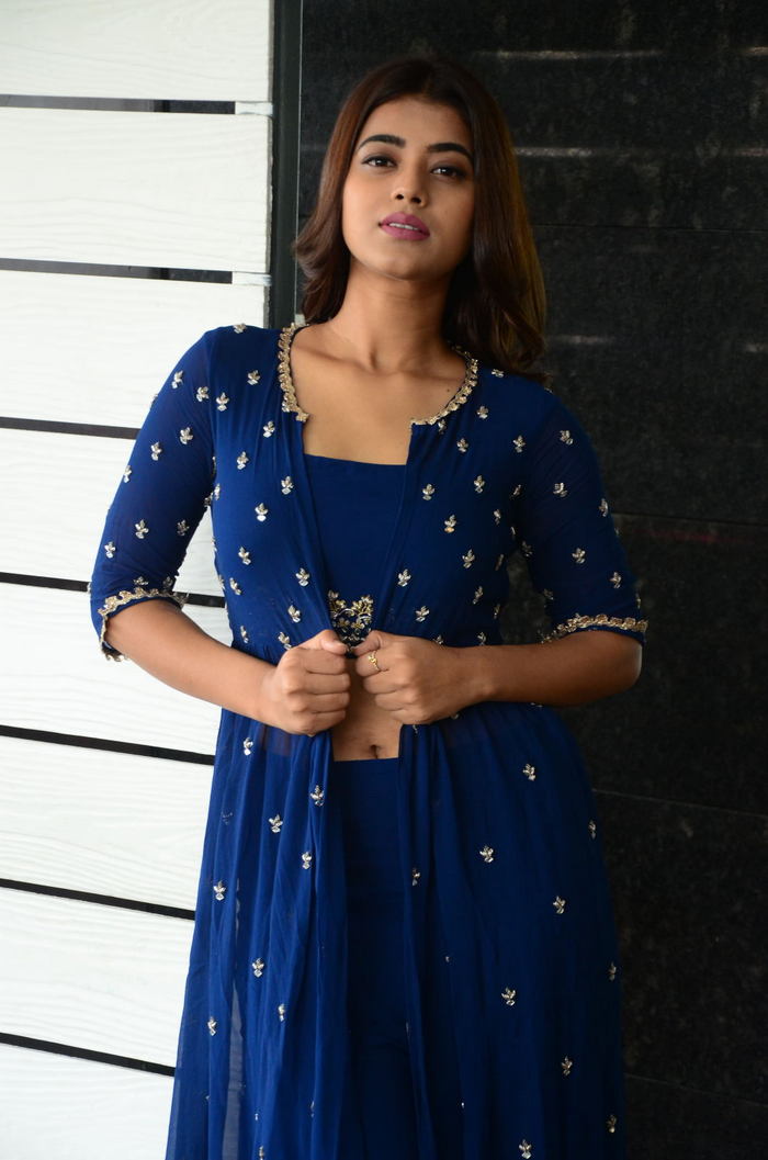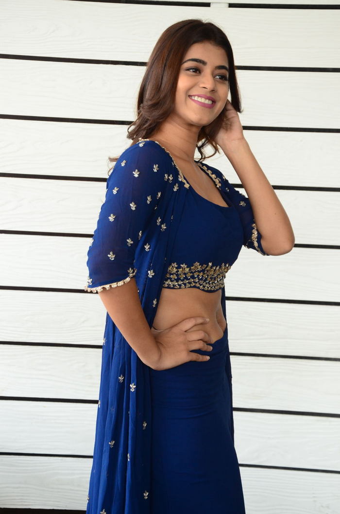 Yamini Bhaskar sizzling stills in Black & Blue Chidiyaa Handblock Sanganeri Printed Cotton Mul Saree paired with sleeveless blouse at Psych Siddhartha Movie Press...